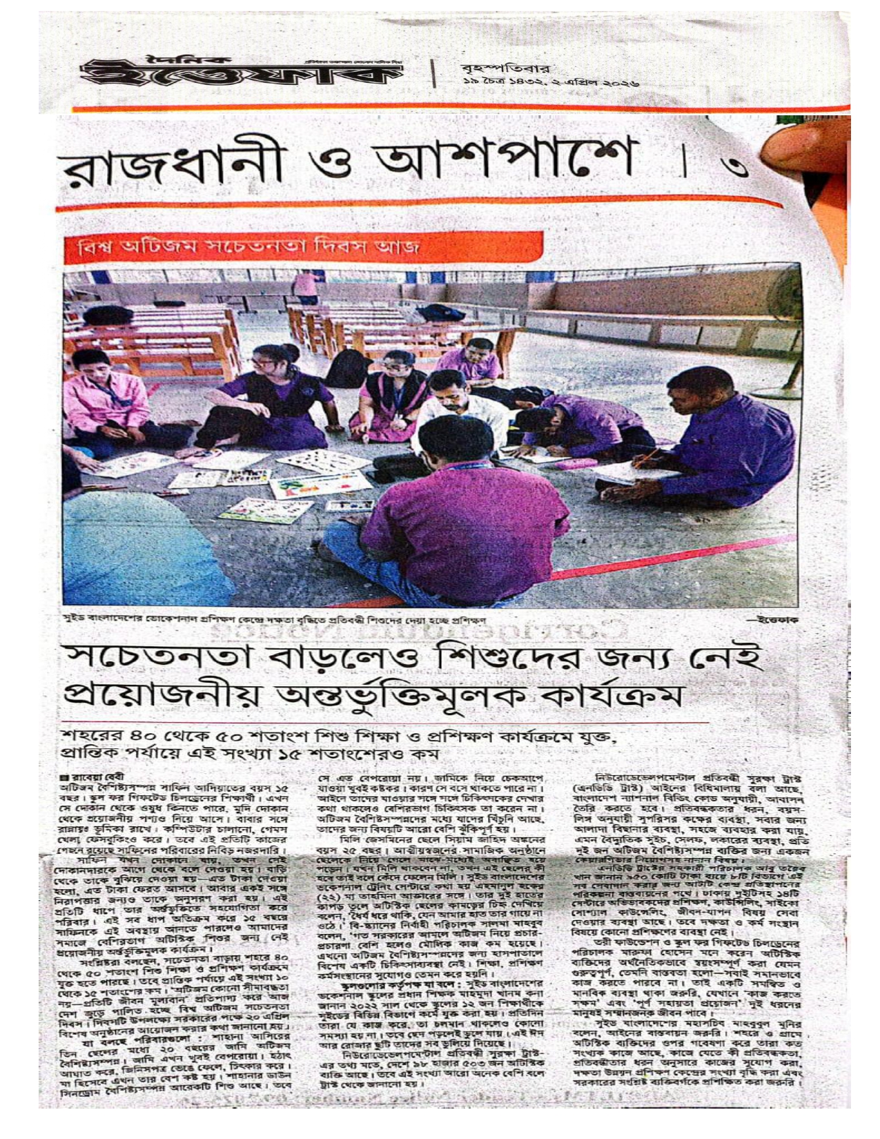Mr. Jowaherul Islam Mamun also worked as Journalist and Columnist since 1969 upto-1996 and Editor of the ‘Weekly Jogot.’ Besides this he organized as a presenter of the Disabilities related live programme named “Amadero Bhalobashun”/ love for PWD in Bangladesh Television (BTV) and “Hellow Apnake Bolsi” which telecasted regularly up to 2015. The people of all sectors participated in the programmes through their questions about “Neuro-Developmental Disabilities over telephone and got answers from the presenter and discussants. It was continuing for long days as very popular and positive responses. He also acted as casual presenter of other TV programmes helped for creation of public awareness about disabilities in the world.