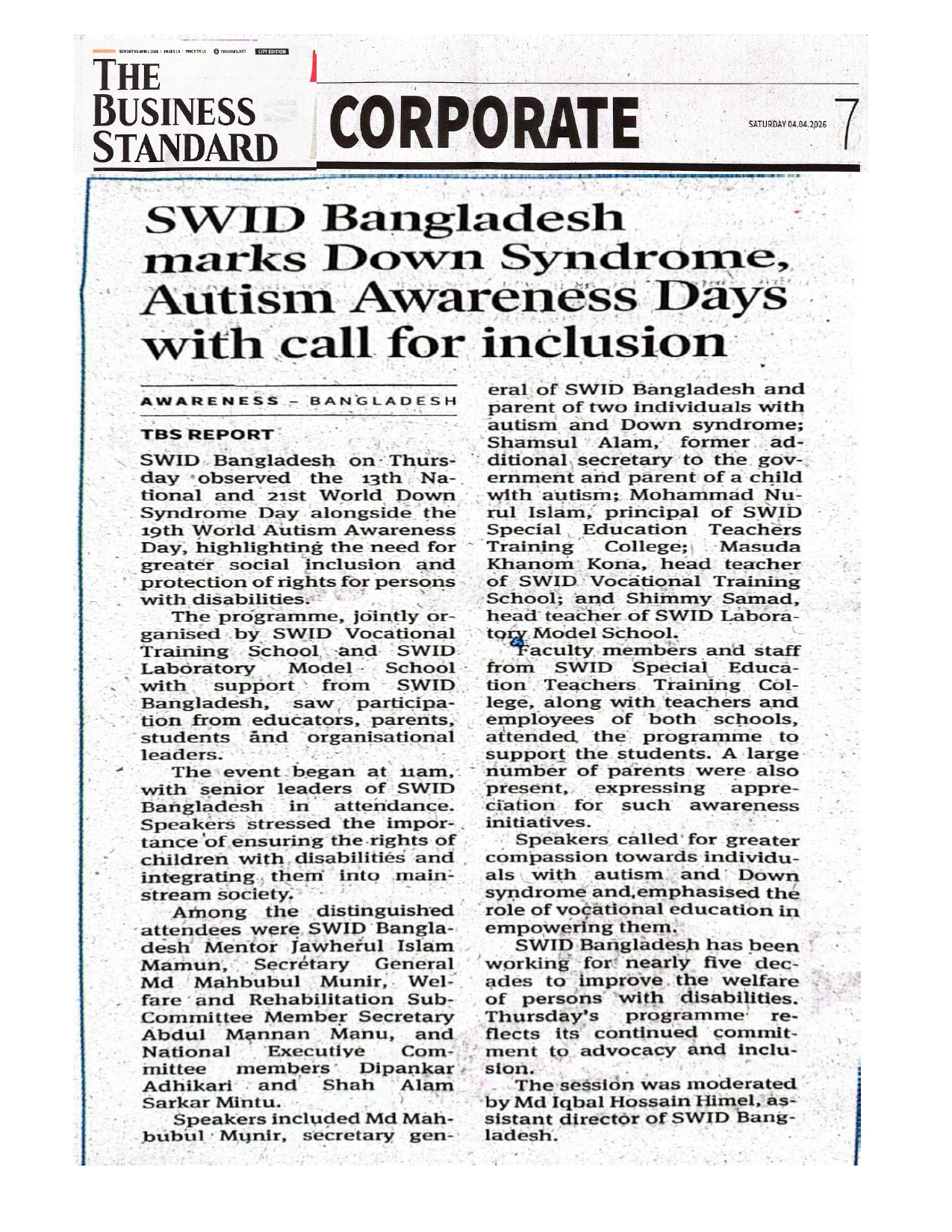 SWID Bangladesh congratulate him for ‘Initiative to organize of Special Education and Inclusive Education’ for the Persons with Special Needs for their potential working skill development, mainstreaming in the society and quality life living.